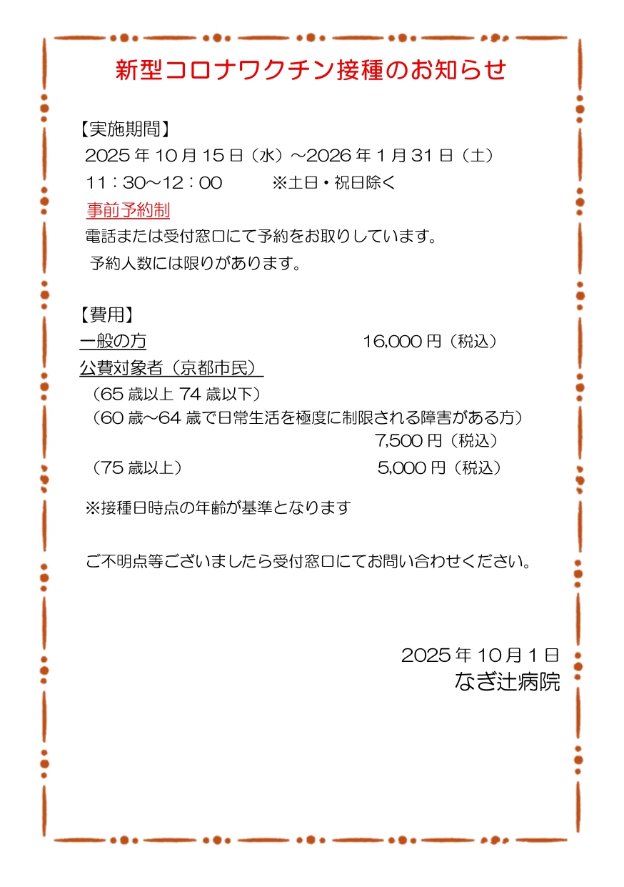 新型コロナワクチン接種のお知らせ